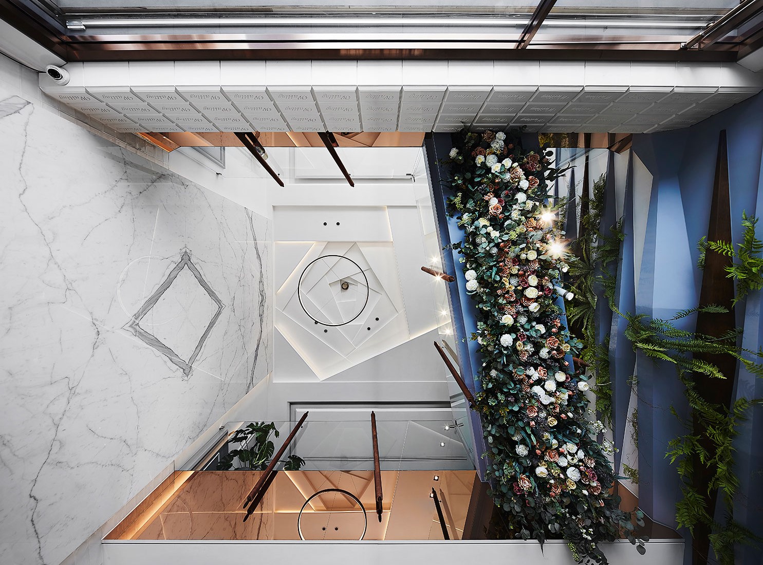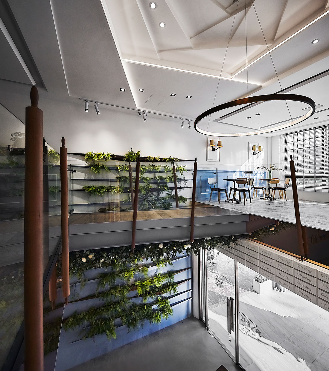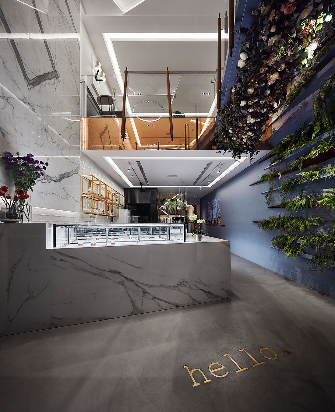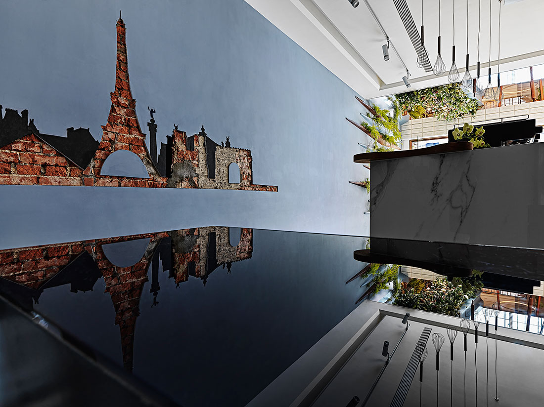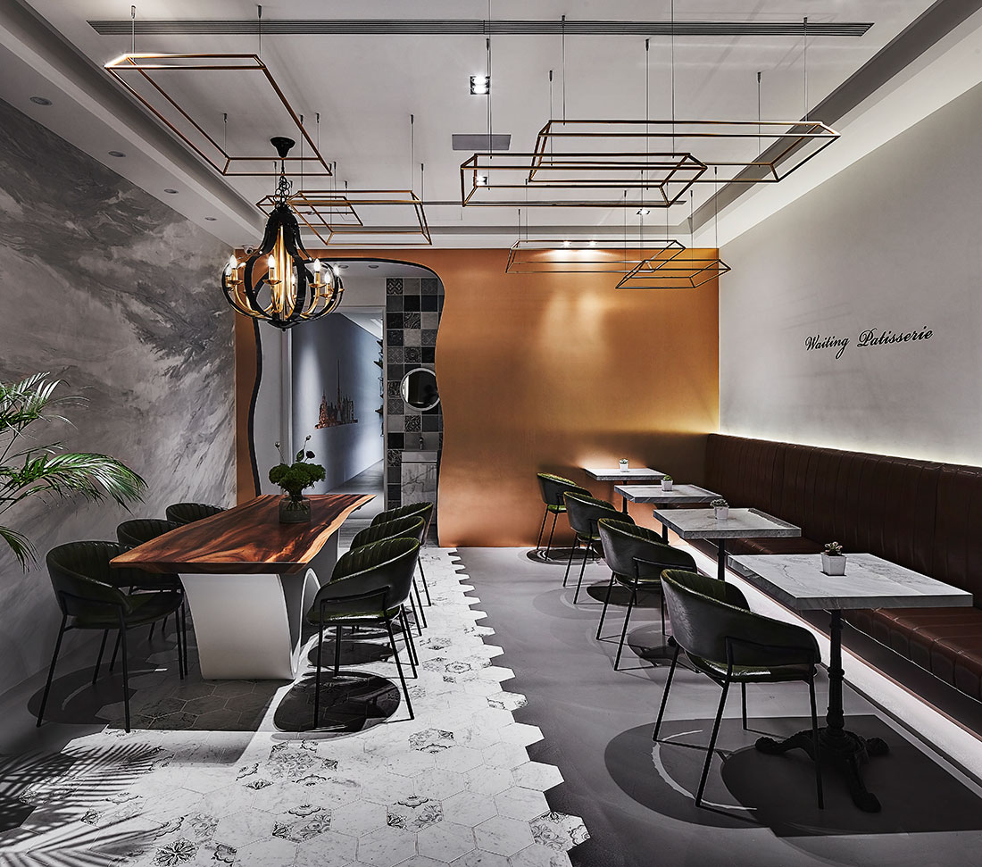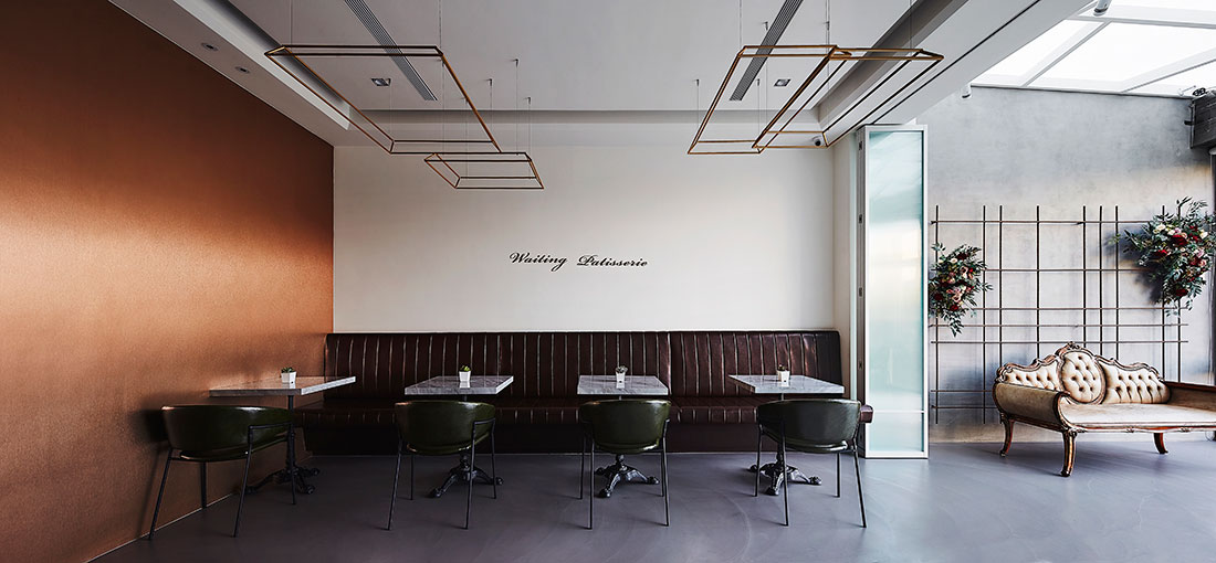 一間座落於熱鬧街區的法式甜點店,散發著優雅浪漫氣息,業主為日本東京藍帶甜點學校畢業,對產品及品牌有著格外嚴謹的要求;我們依循其質感細節,從中抽絲剝繭,將物件表徵在空間裡,以品牌代表色皇室藍及香檳金鋪底,搭襯由產品特點衍生而出的特色軟裝,於簡約中表現質感張力,滿足「甜覓客」對法式浪漫的一切囈想。