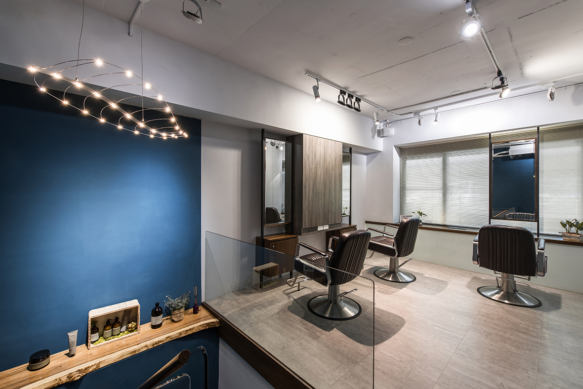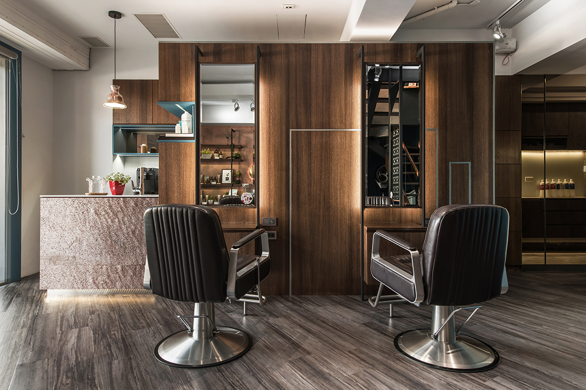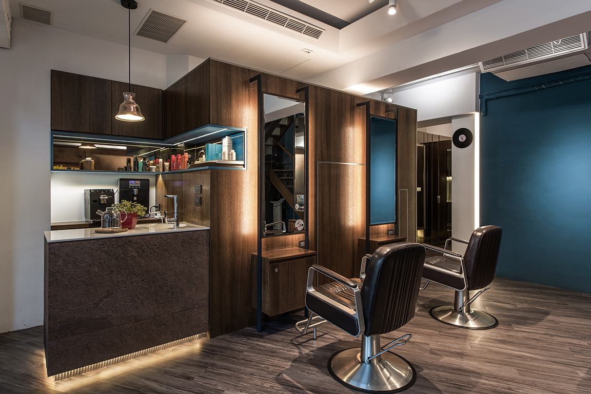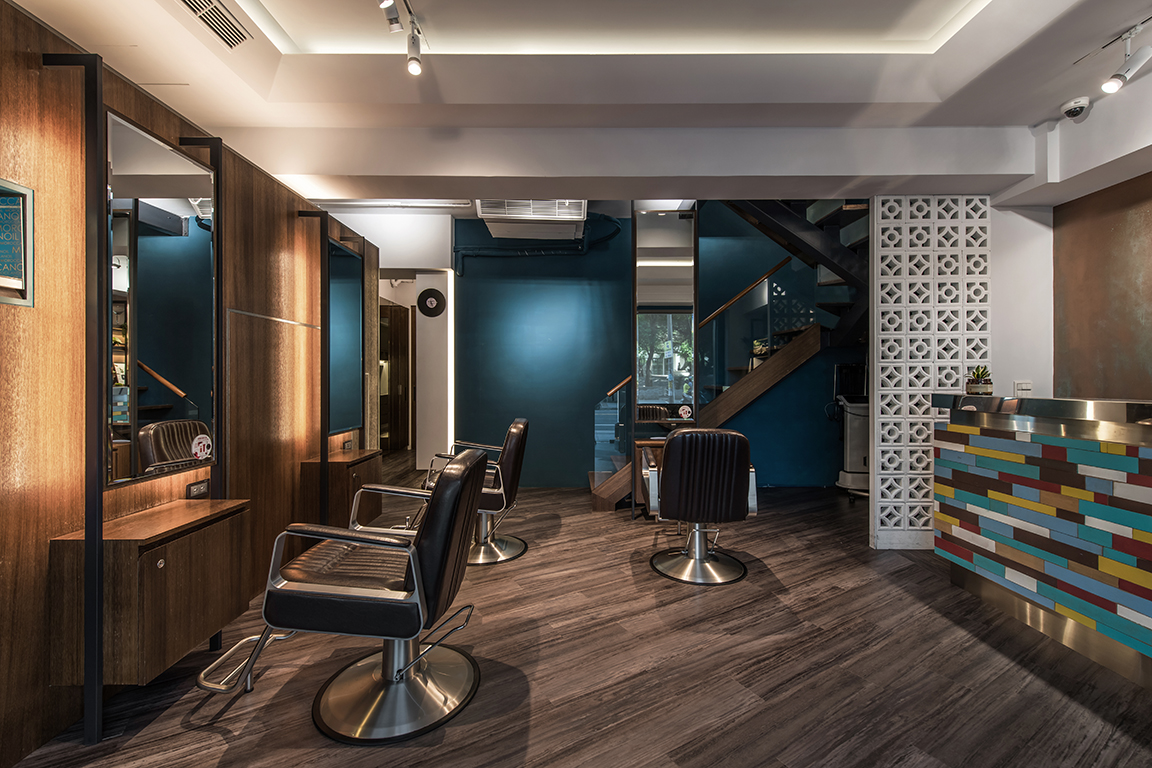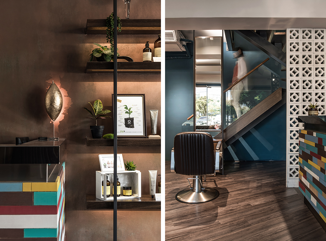 深淺對比的色塊穿梭於牆面與傢俱之間,像是大膽的筆觸,為視覺注入一絲不羈的玩心。選用冷調金屬與溫潤木質對比,透過活潑色塊與異材質拼接,巧妙打破空間框架,形塑個性鮮明的視覺語彙,燈光與鏡面則延伸場域層次,讓每一次造型塑造,都是對自我風格的探索與實驗。