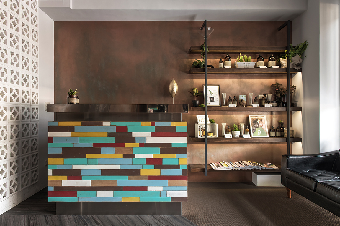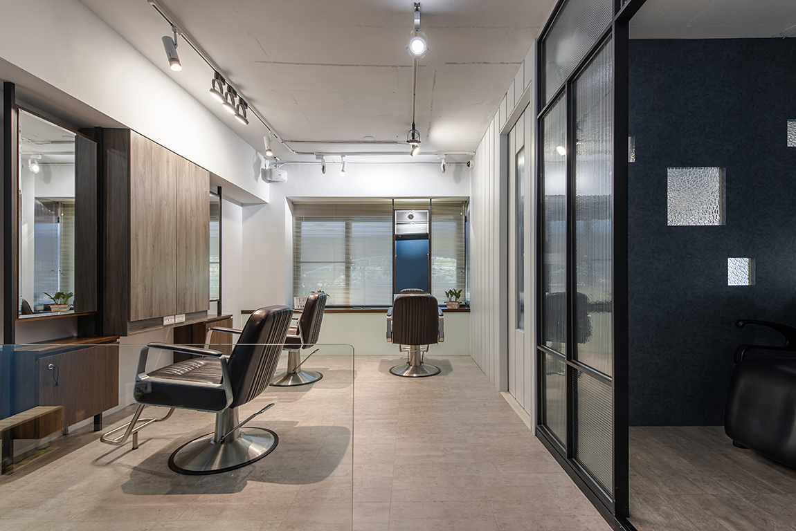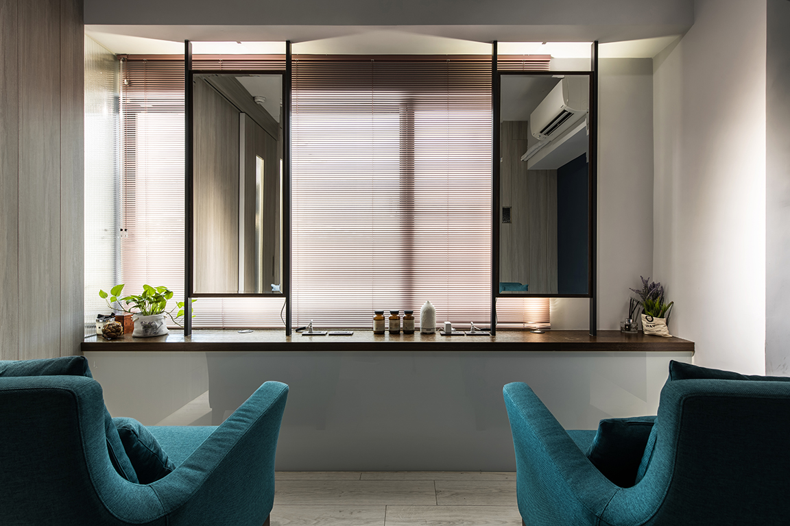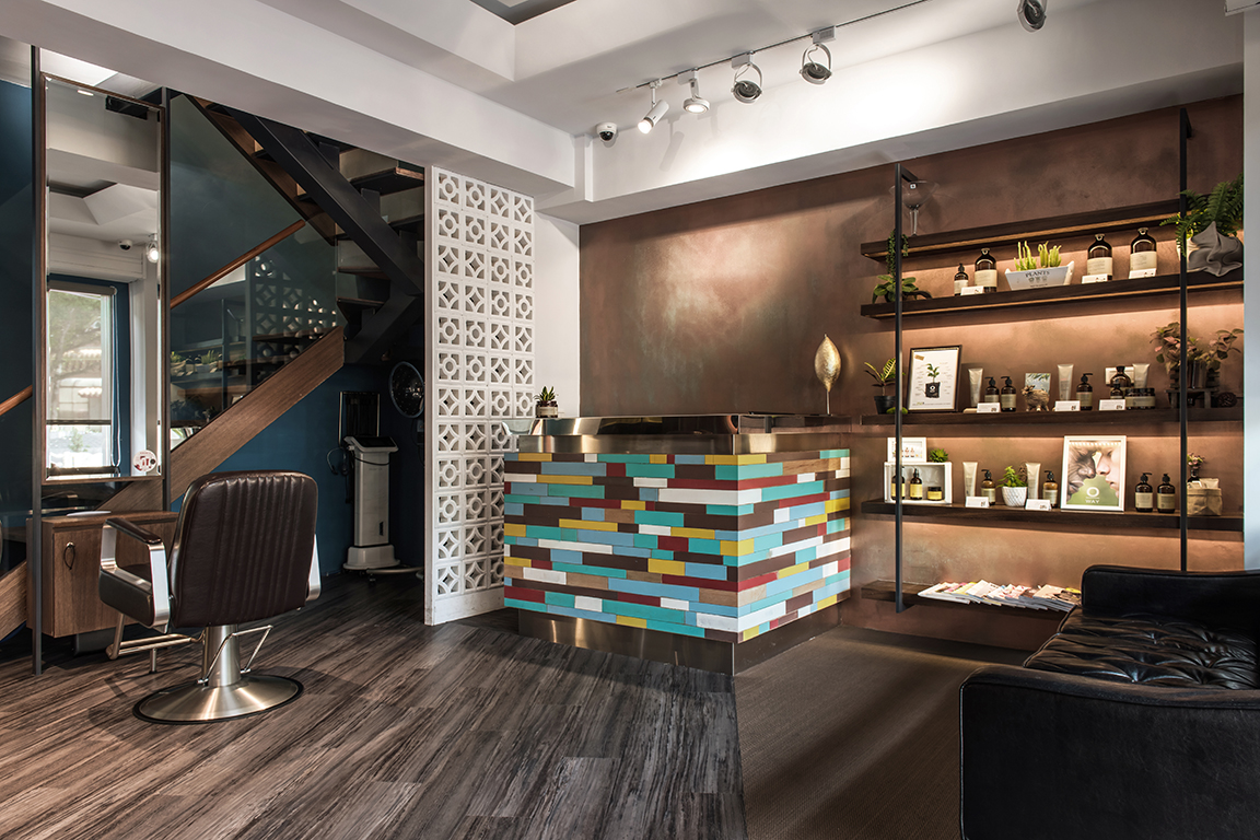 深淺對比的色塊穿梭於牆面與傢俱之間,像是大膽的筆觸,為視覺注入一絲不羈的玩心。選用冷調金屬與溫潤木質對比,透過活潑色塊與異材質拼接,巧妙打破空間框架,形塑個性鮮明的視覺語彙,燈光與鏡面則延伸場域層次,讓每一次造型塑造,都是對自我風格的探索與實驗。