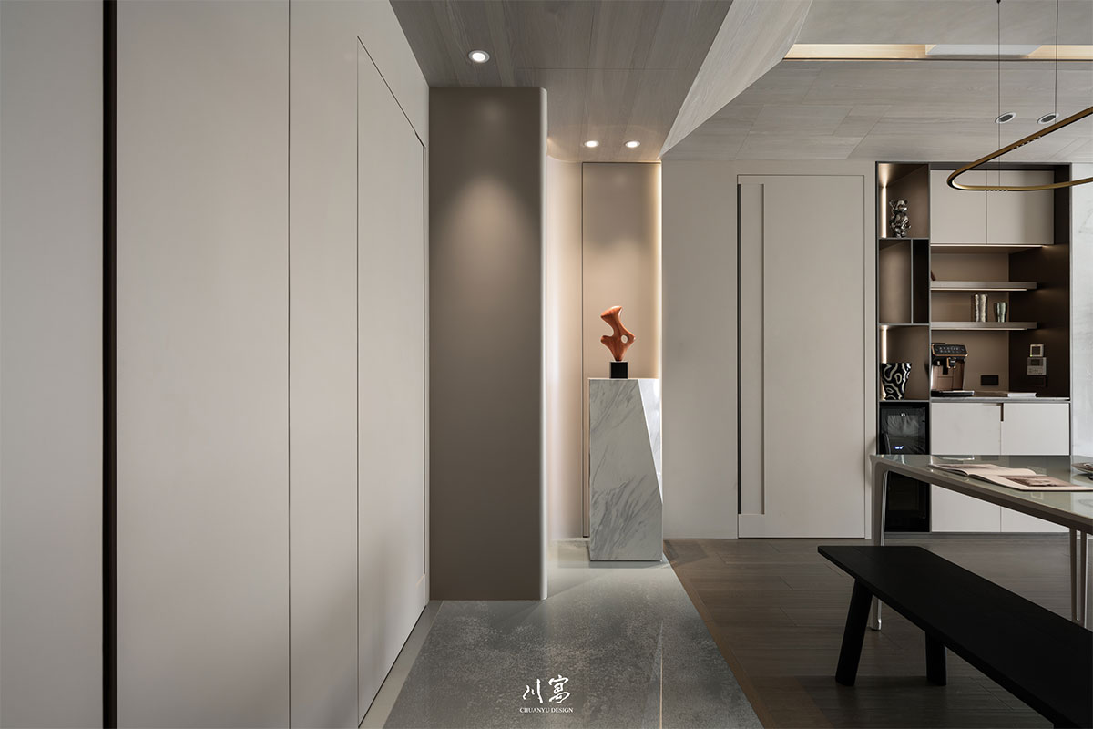 空間不僅是一處居所,更是承載品味與情感的場域,映照出業主對生活的理解,也凝聚川寓設計始終如一的品牌信念——在理性與感性之間,為生活注入靈魂。