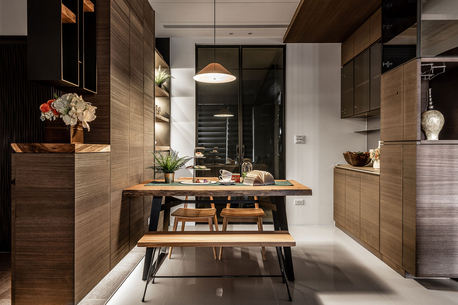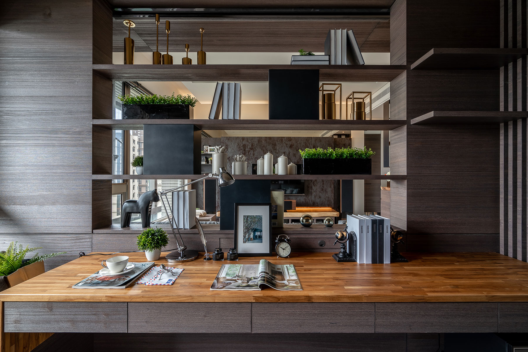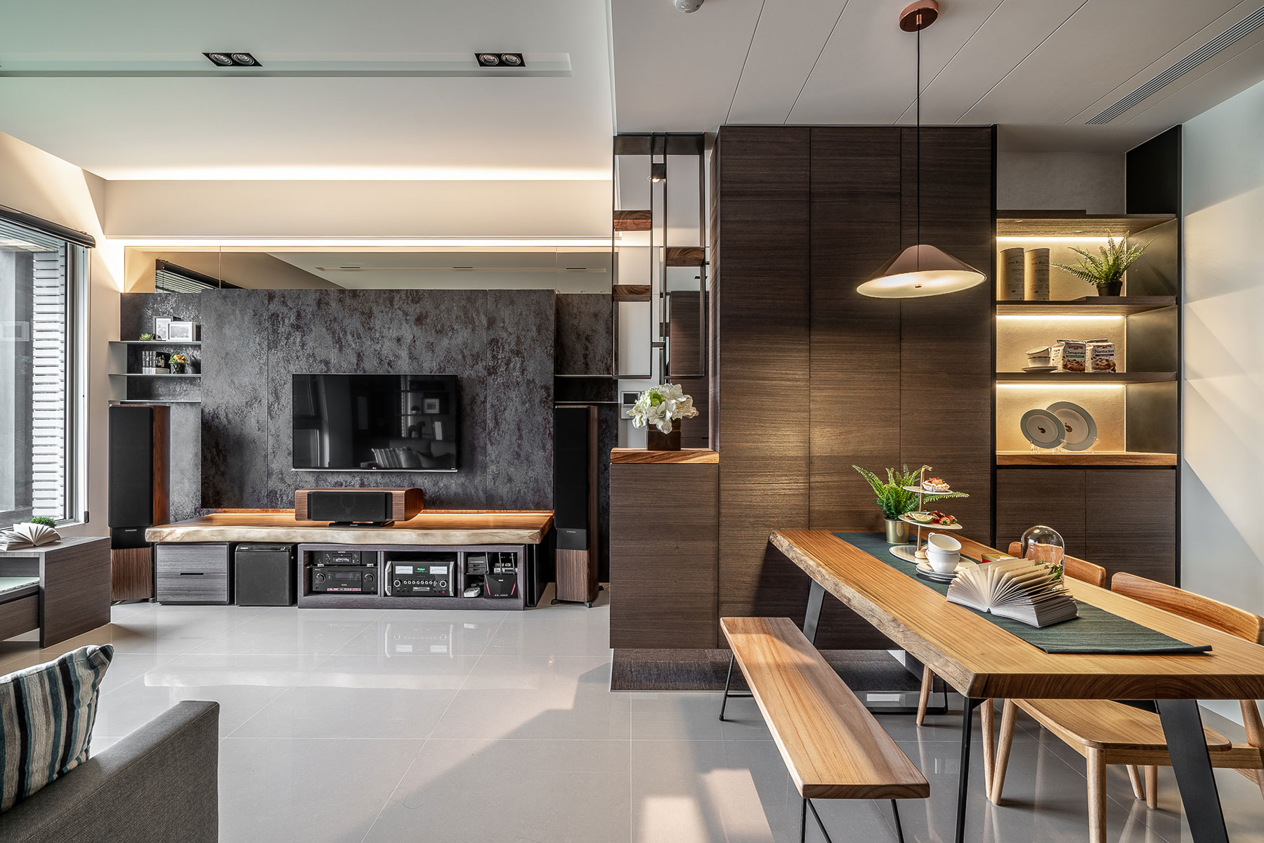 整體設計簡潔而不簡單,打造出一個沉穩而充滿高級質感的空間。