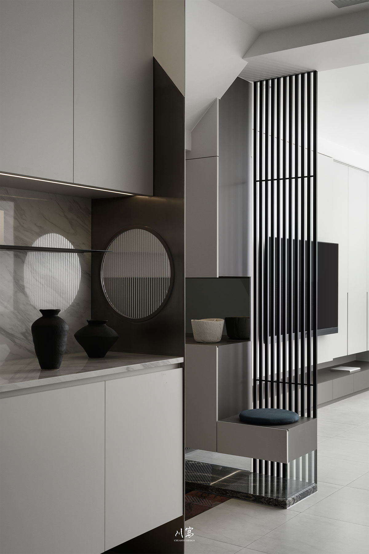 線條在俐落的空間中隨著光影流動,一進家門即展現質感與專屬的生活風格。