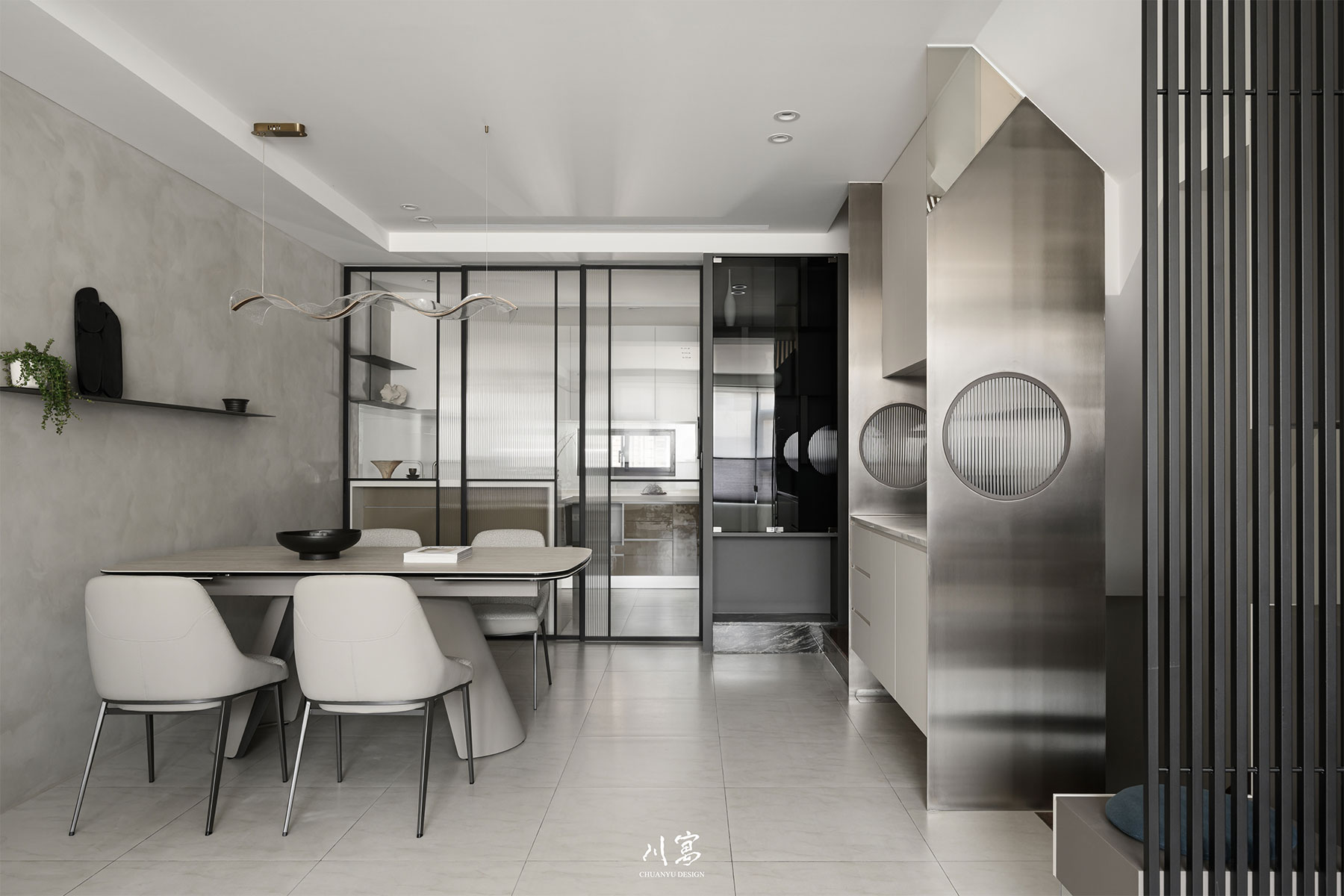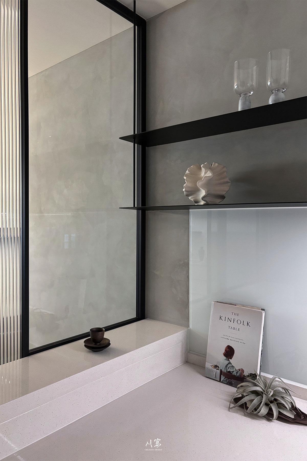 為保留光線與通透感,廚房採用玻璃拉門作為分界,兼具機能與美感。